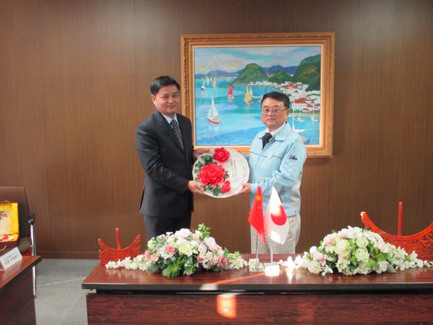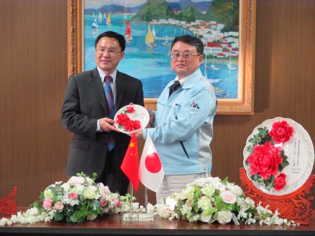 達真陳總經理與日本電產(三協)株式會社安川社長在雙方公司合作30周年慶祝儀式留影【日本電產(三協)總部】